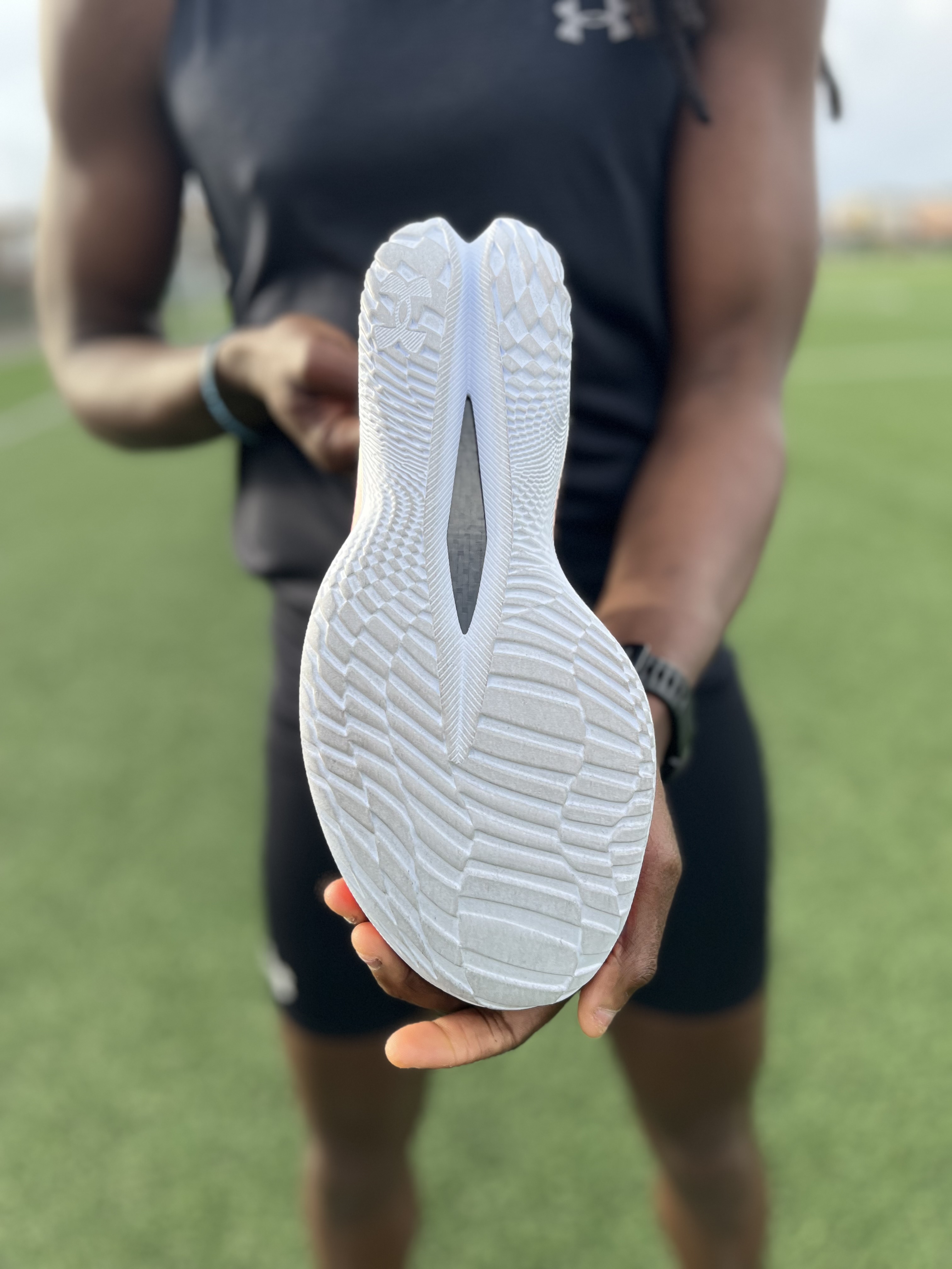 The Velociti Elite 2's versatility extends beyond its cushioning. Louis appreciated the shoe's upper mesh, designed for breathability and comfort, ensuring that his feet remain cool and dry, even during intense runs. Additionally, he is a fan of its unique look and bright colours, which often catch the eye of other runners.
