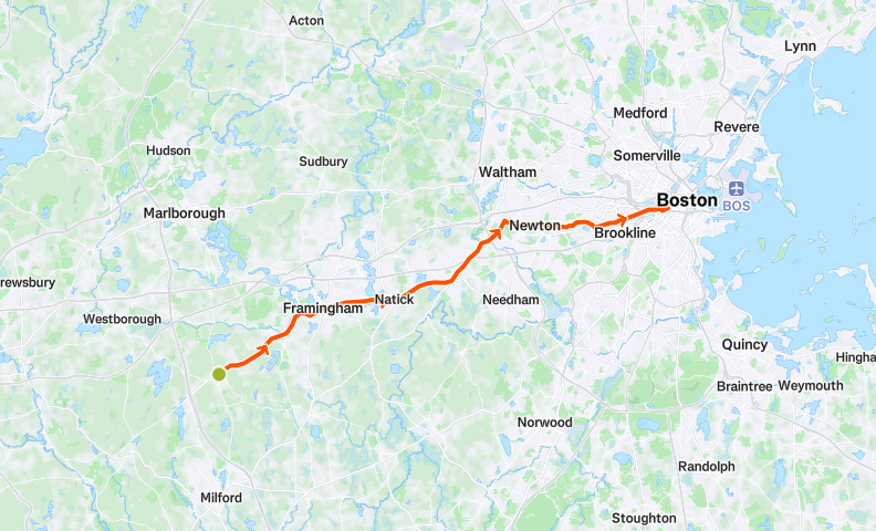 Der Boston Marathon ist eine klassische Punkt-zu-Punkt-Strecke und ist für sein anspruchsvolles Terrain bekannt. Seit 1924 beginnt sie in der Stadt Hopkinton, gefolgt von einer kurvenreichen Strecke bergab nach Ashland und weiter nach Framingham, Natick und Wellesley. Anschließend geht es nach Newton, wo die Läufer einen allmählichen Anstieg bewältigen müssen, der zu der berühmten Challenge des Rennens führt: Heartbreak Hill. Dieser letzte große Anstieg bei Meile 20 stellt selbst die erfahrensten Läufer auf die Probe. Oben angekommen, werden sie jedoch mit einem Blick auf die Skyline von Boston belohnt. Von dort aus führt die Strecke durch Brookline hinunter zum Ziel in der historischen Boylston Street in Boston - ein unvergesslicher Abschluss eines legendären Rennens.
