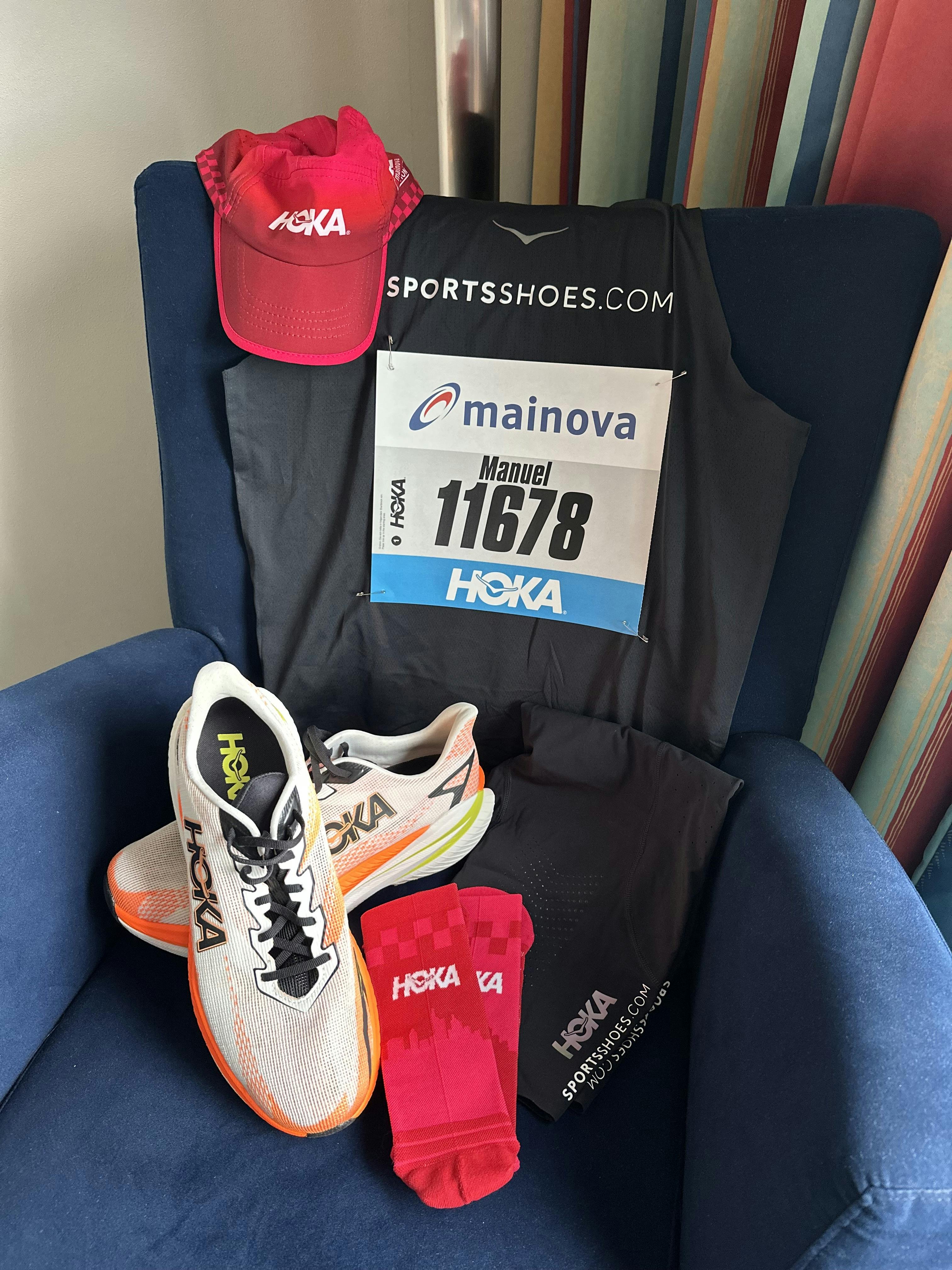 Ende Oktober kann das Wetter in Frankfurt unberechenbar sein. Von Singlet und Shorts bis hin zu langer Laufbekleidung ist auf der Strecke daher alles zu sehen. Für Manuel waren Mütze und Thermoshirt das A und O, um während des Rennens warm zu bleiben und in den Mach X 3 Laufschuhen von HOKA konnte er die 42 Kilometer lange Strecke bequem meistern. Manuel war aber nicht der einzige Läufer in HOKA-Ausrüstung. Als offizieller Sportpartner beim Mainova Frankfurt Marathon spielt HOKA eine wichtige Rolle, um das Erlebnis aller Teilnehmer am Renntag zu optimieren.
