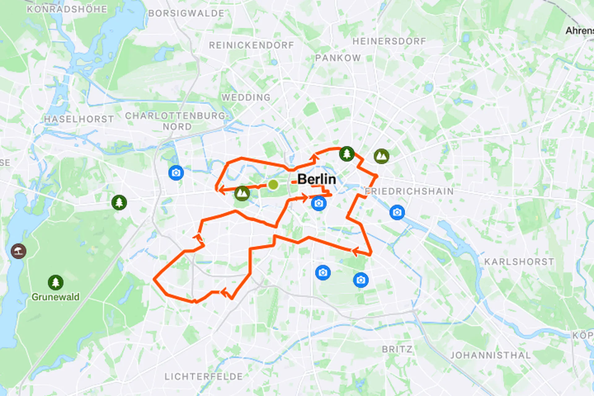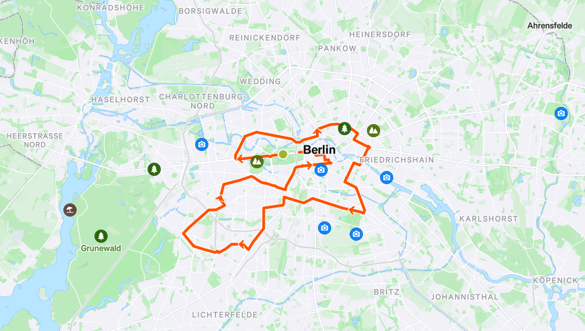 Die Strecke ist eine eindrucksvolle Sightseeing-Tour zu Fuß und passiert einige der berühmtesten Wahrzeichen der Stadt - darunter Berliner Dom, Brandenburger Tor, Siegessäule, Bundeskanzleramt, Checkpoint Charlie und Potsdamer Platz.