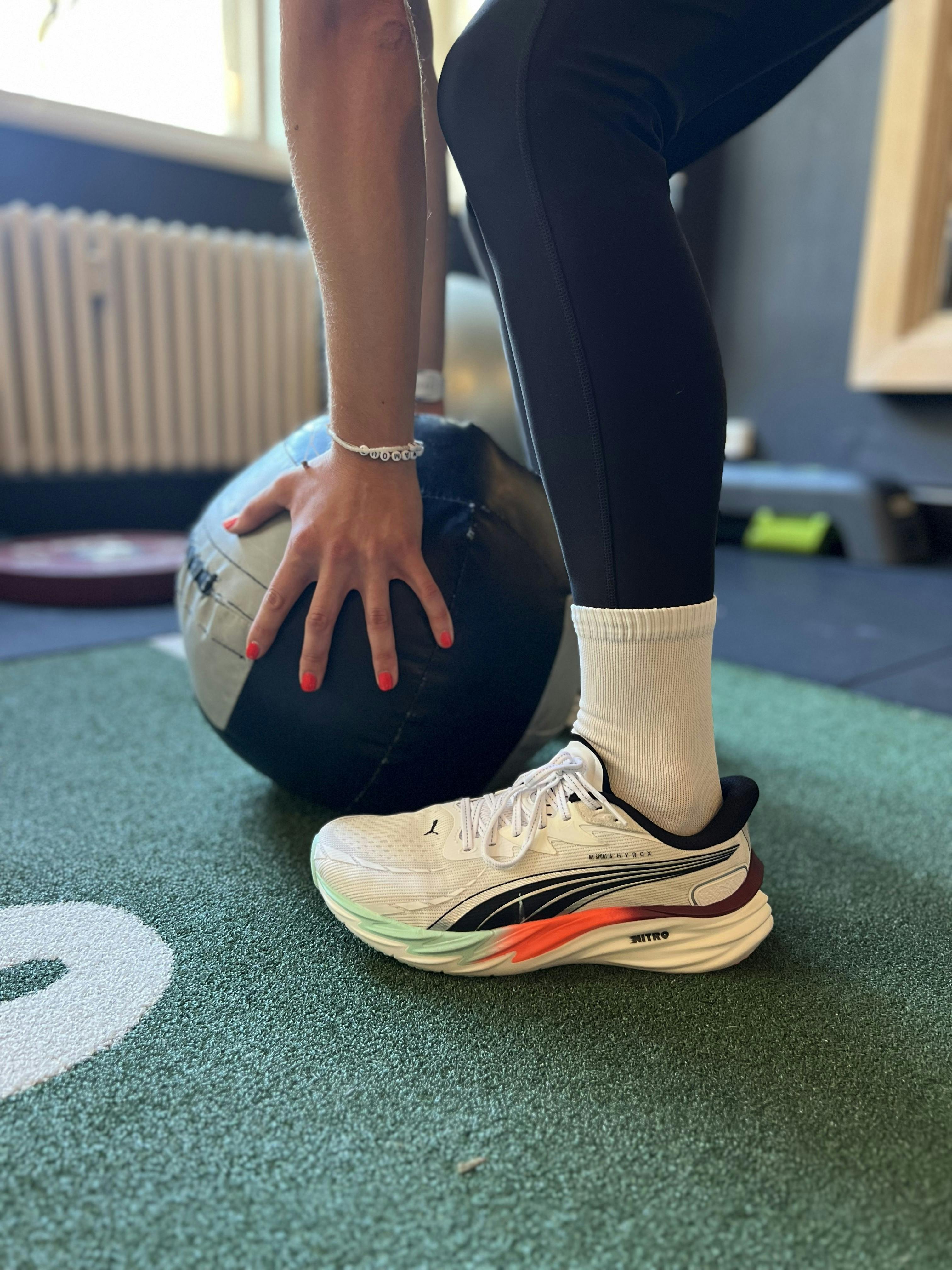 „Die beste Wahl für HYROX ist ein vielseitiger Schuh, der die Dämpfung eines Laufschuhs mit der Stabilität eines Trainingsschuhs vereint. Vor allem bei Stationen wie beim Schlitten schieben, braucht man viel Halt und Grip. Meine Empfehlung ist der Puma Deviate Nitro Elite 3!“