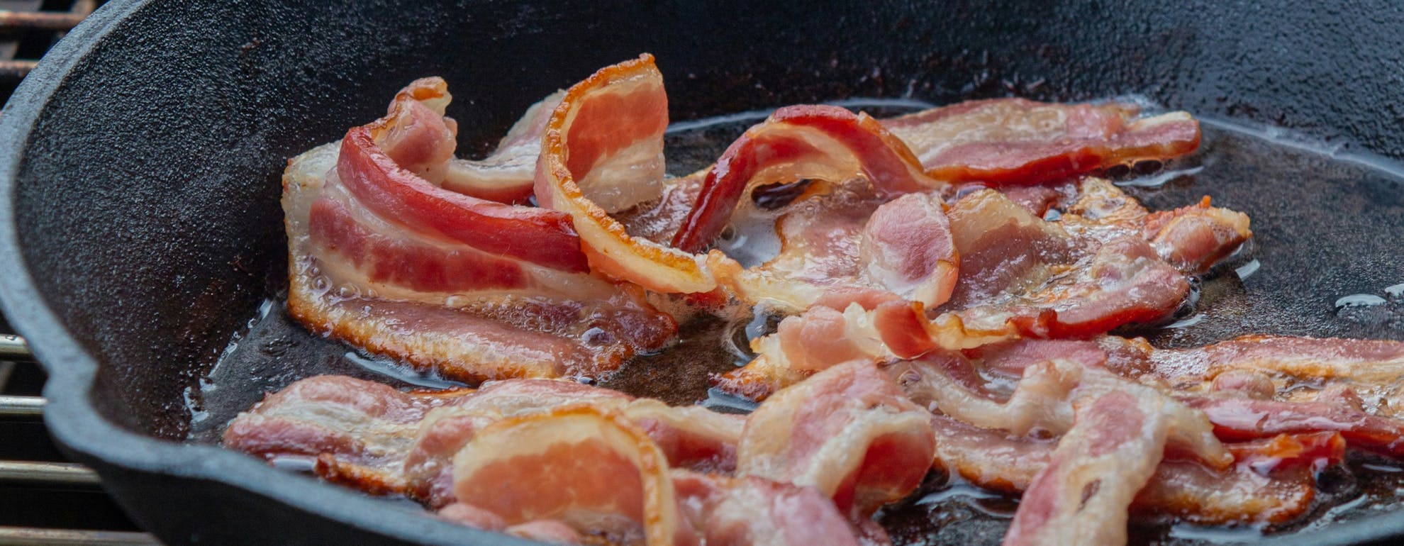 - Während der Reis kocht, den Speck würfeln und ihn auf mittlerer Hitze in einer Pfanne anbraten. Sobald er knusprig ist, das Fett abgießen und Überreste mit einem Küchentuch abtupfen.
