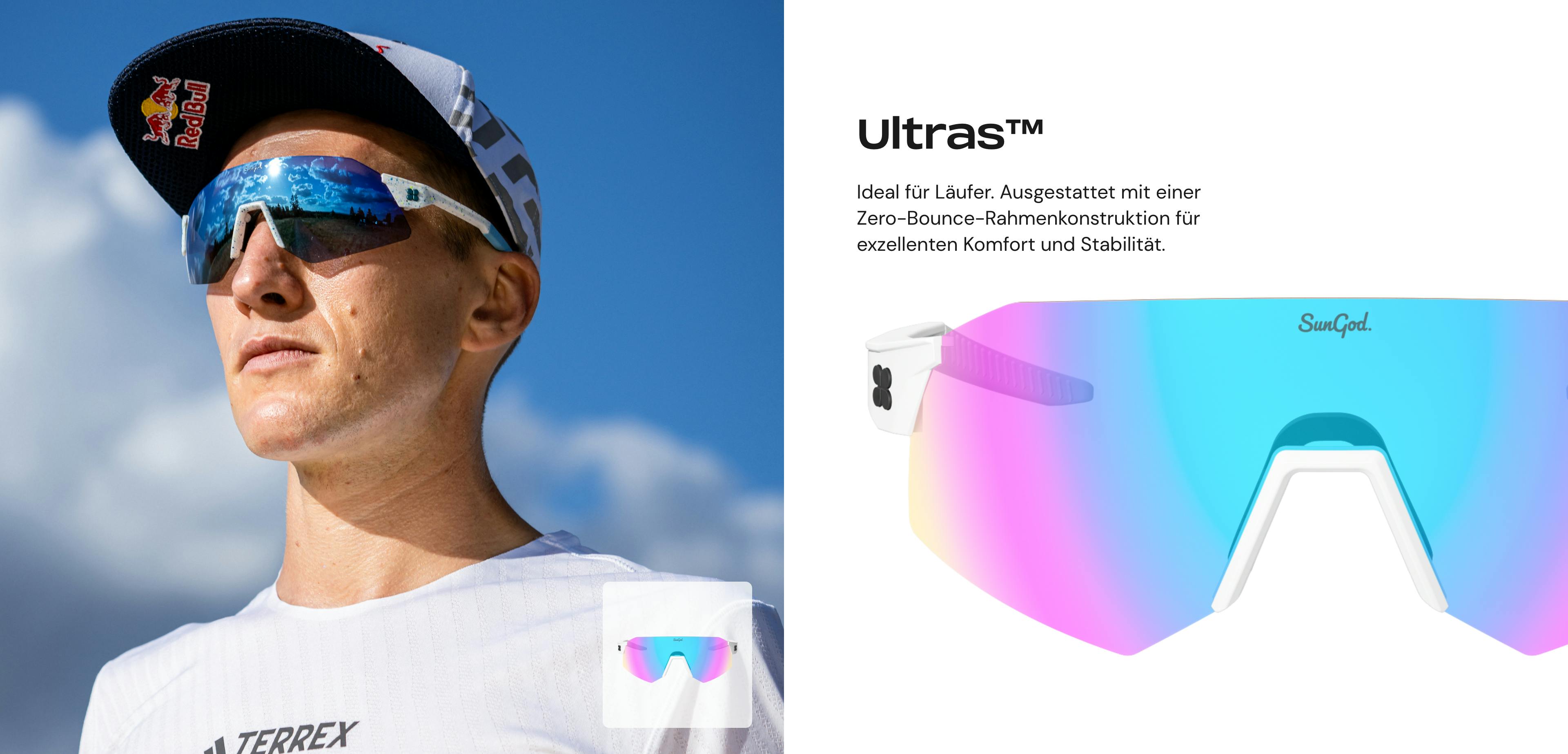 Für viele der weltbesten Athleten und Teams sind SunGod Laufbrillen die erste Wahl. Zu den Sportikonen gehören der 7-fache Tour de France-Sieger INEOS Grenadiers, die weltweite Nummer 1 der Ultra-Trail-Läufer Courtney Dauwalter und Superstar-Triathlet Hayden Wilde. Vertraue auch auf SunGod Brillen für eine bessere Sicht und maximale Performance. Entwickelt mit Athleten – für Athleten!