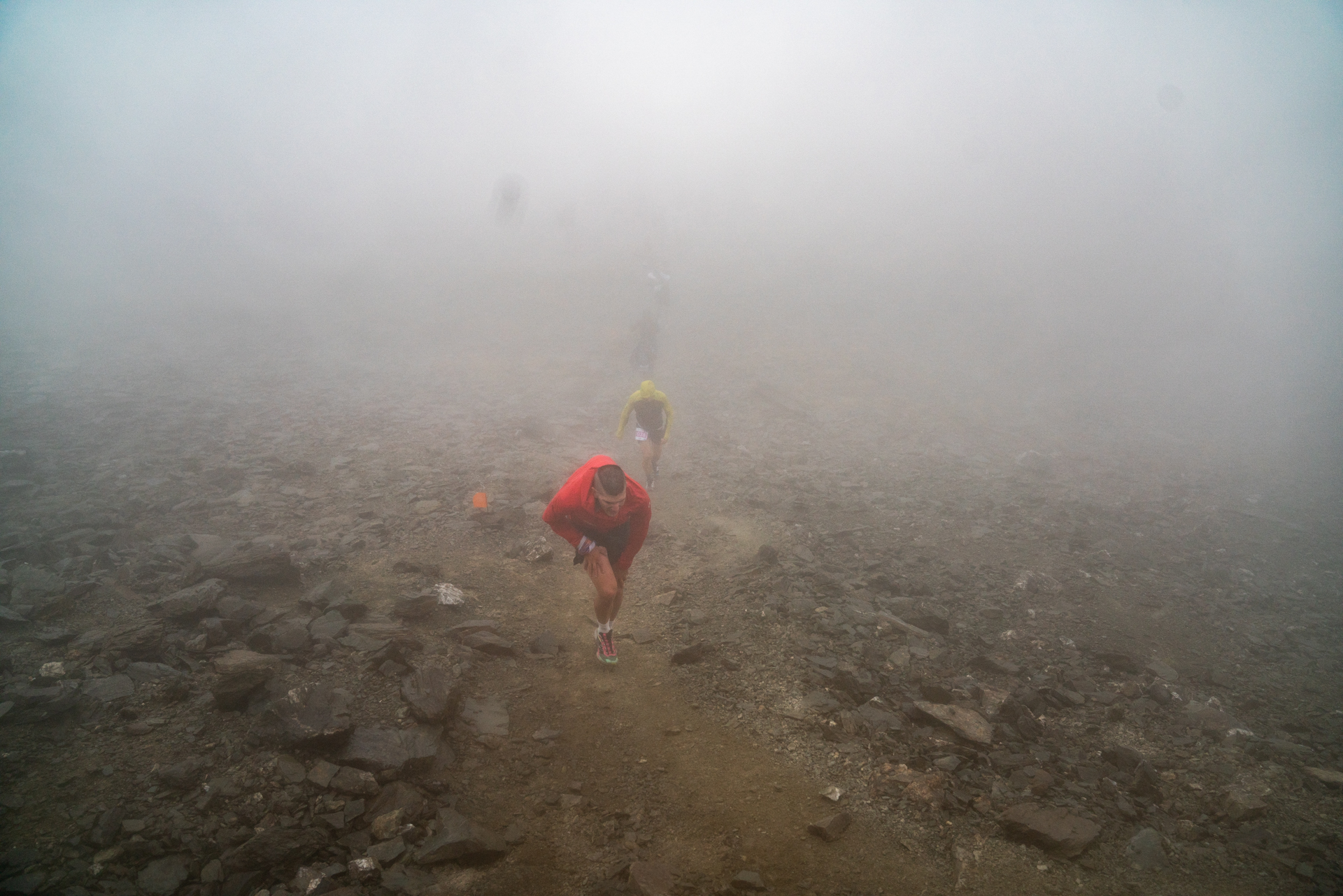 Desde allí, los corredores ascendieron al Puigmal (2.910 m), la primera cima de un recorrido que crestea a más de 2.700 m hasta el Collado de Finestrelles. Lo que parecía un día de montaña dura pero controlada, se transformó rápidamente en una experiencia al límite: viento, lluvia intensa y granizo hicieron acto de presencia antes de lo previsto.