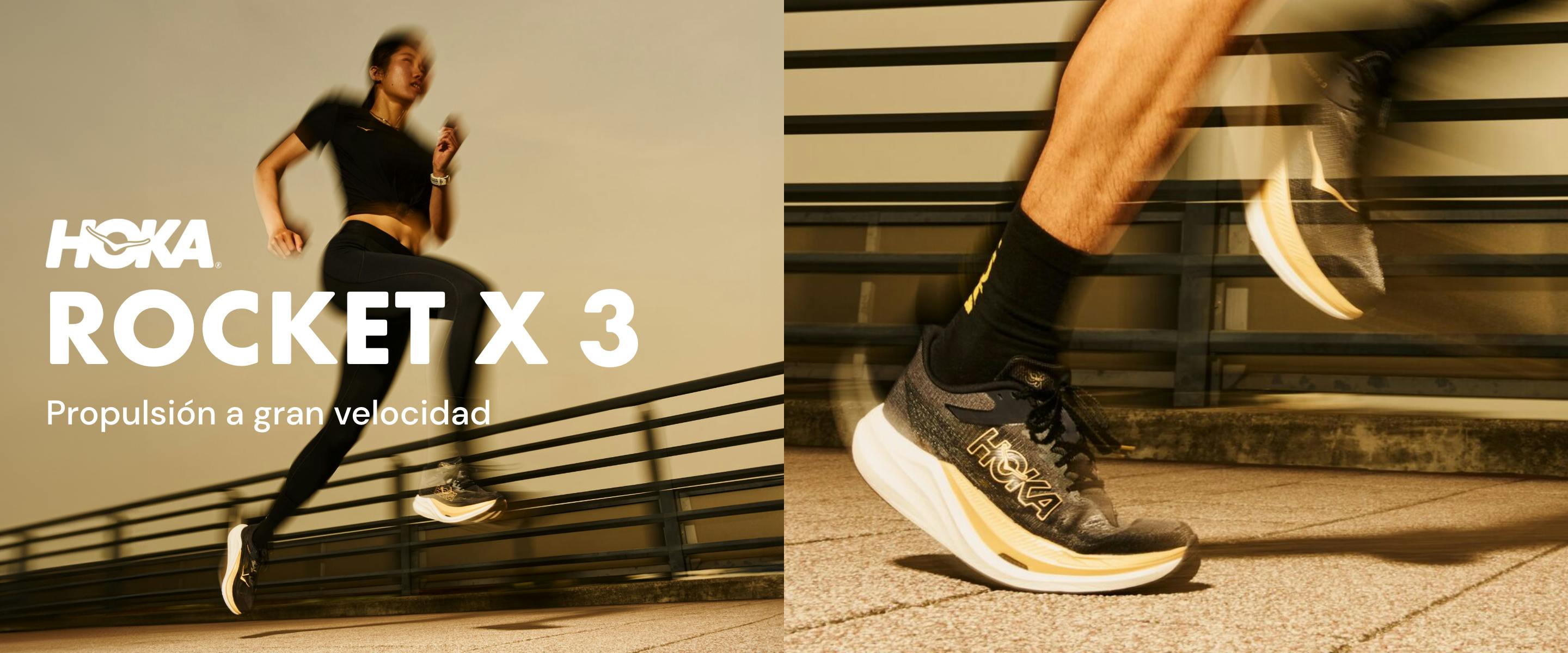 Ofrecemos los últimos productos de running de gama alta de HOKA incluyendo las populares Clifton 9, Speedgoat 5 y las nuevas zapatillas de competición Rocket X 2 y Cielo X 1.