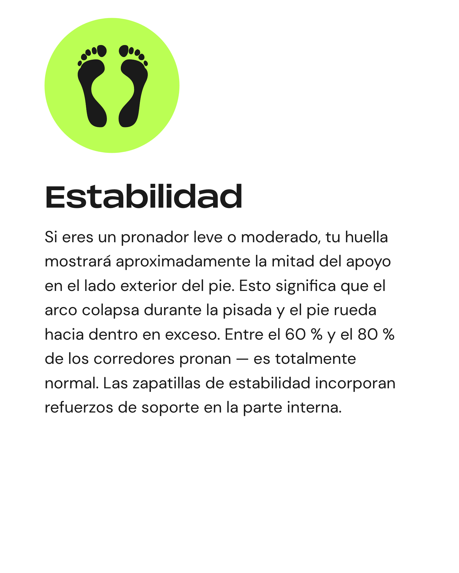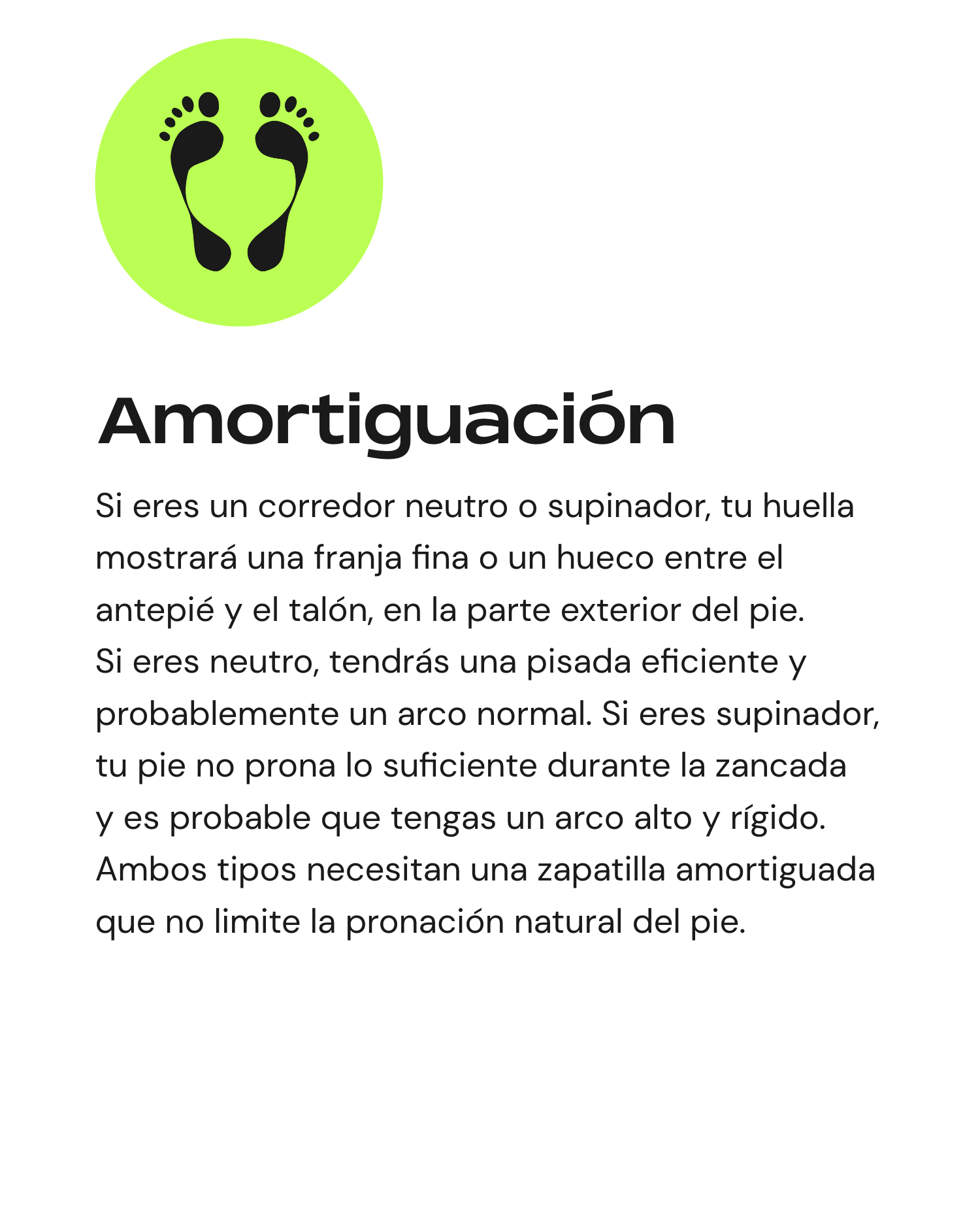 No existe una única zapatilla de running, porque cada corredor tiene características y necesidades diferentes. La pronación se refiere al movimiento natural de lado a lado del pie al caminar o correr. Puede ser neutra, leve o pronunciada.