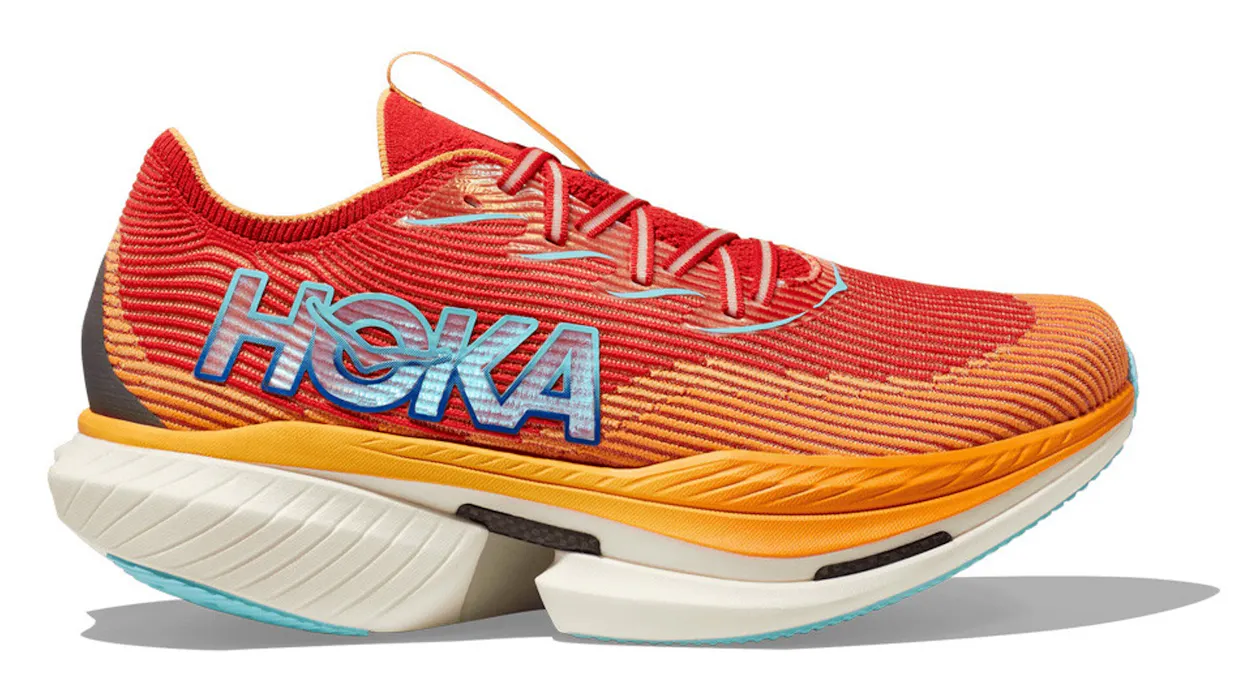 Chaussure de compétition épurée la plus légère de HOKA, la Cielo RD est une chaussure plate plutôt traditionnelle. Cette chaussure ultra-légère convient particulièrement pour les distances courtes jusqu'à 10 km.