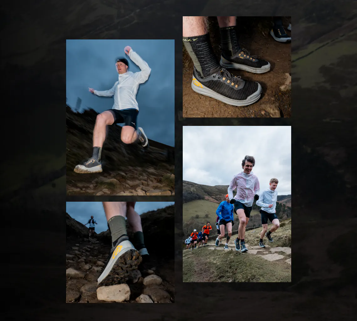 et la compétition. Conçue dans le Lake District pour affronter les terrains les plus accidentés et les plus difficiles, elle offre à vos pieds l'espace, la protection et la confiance nécessaires pour courir toute la journée.