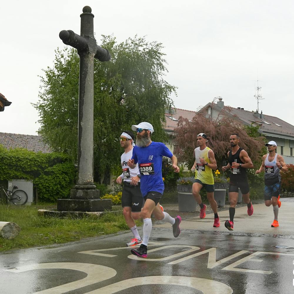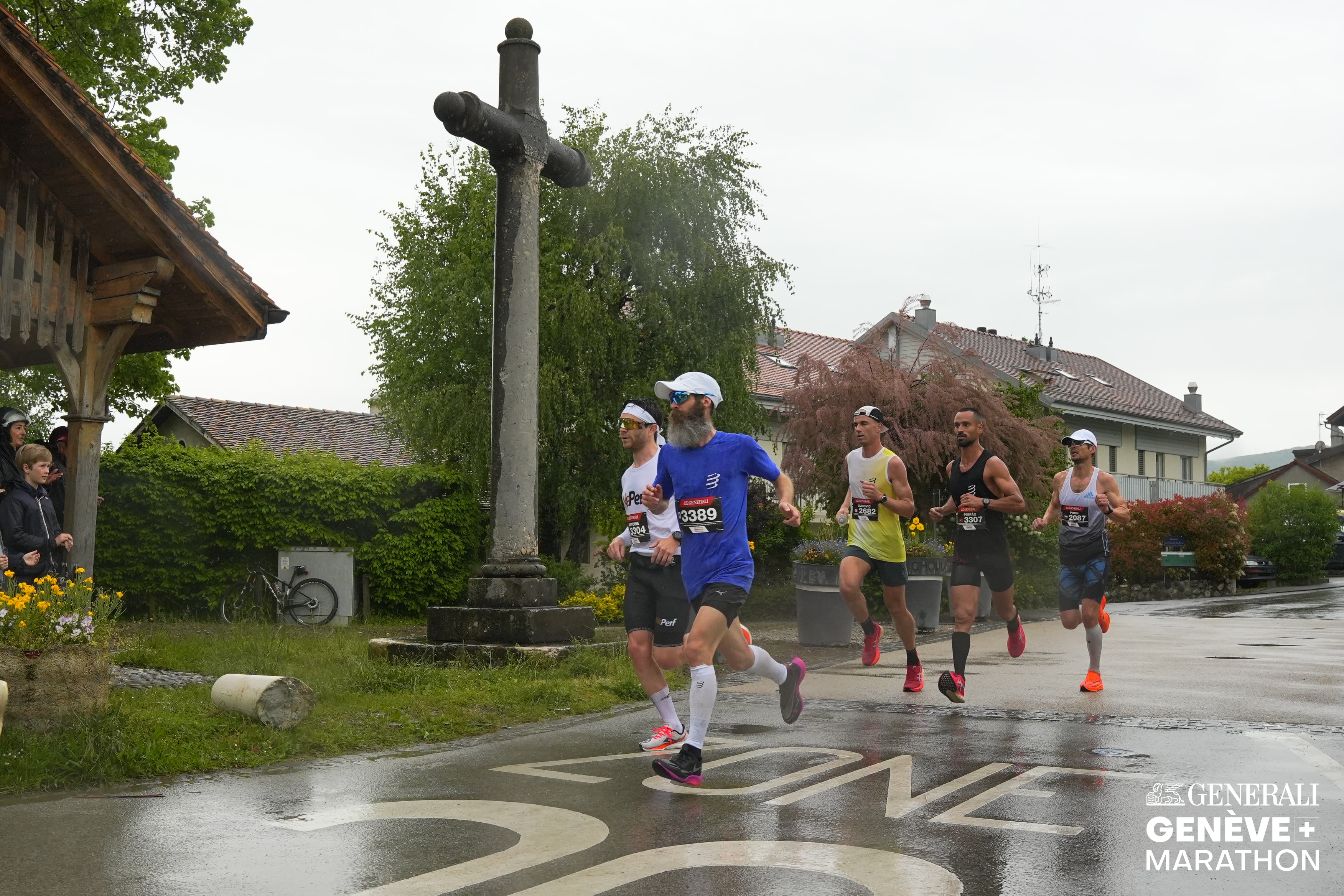 Dura, immaginavo che sarei rimasto solo per buona parte del tempo e così è stato. Il percorso e il pubblico sono stati fantastici: il percorso si snoda nella campagna a est di Ginevra ed è veramente spettacolare: si passa attraverso piccoli paesini dove la gente è in strada per applaudire per poi tornare alle strade più agresti nel silenzio della campagna, da soli coi propri passi.