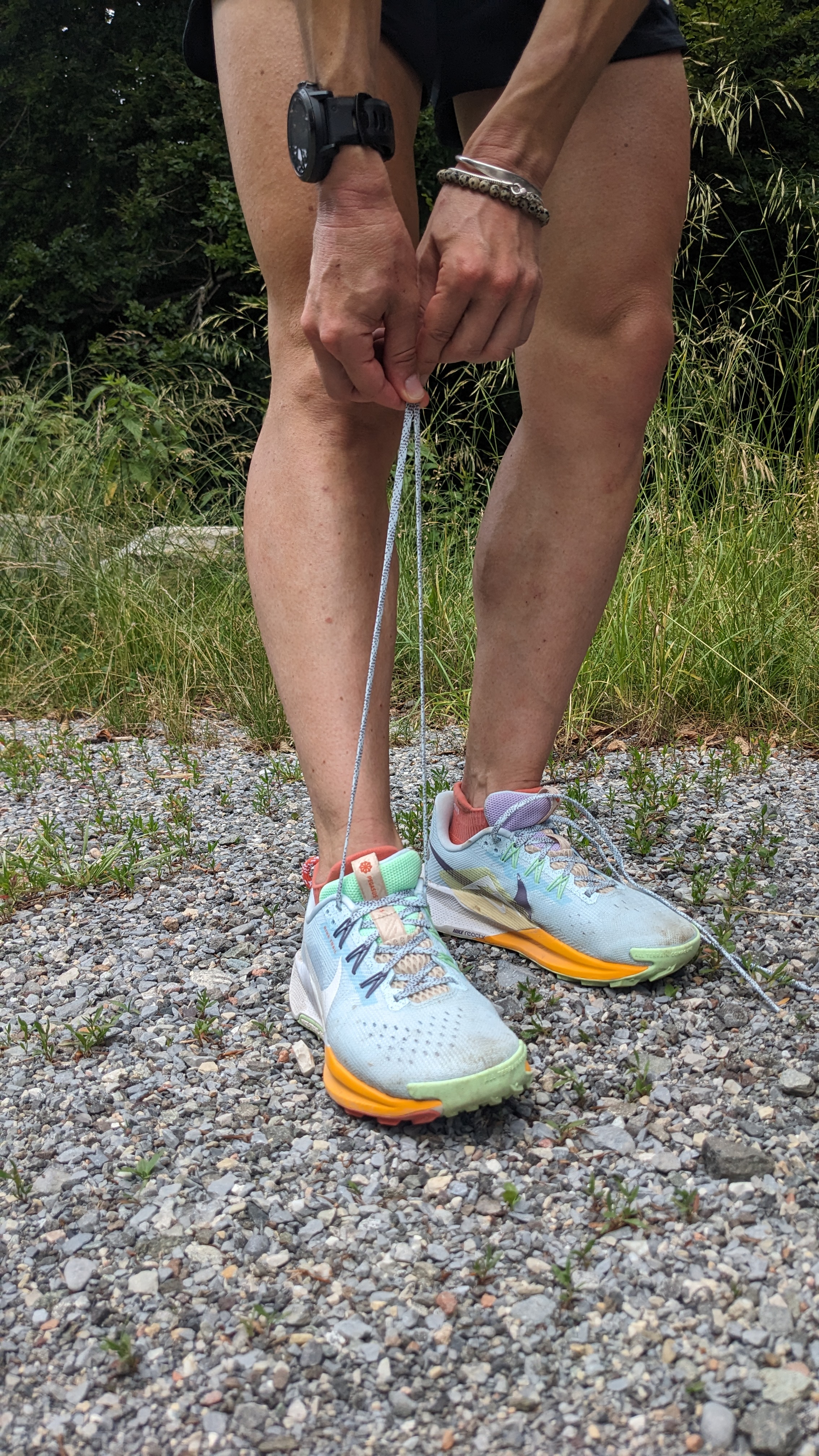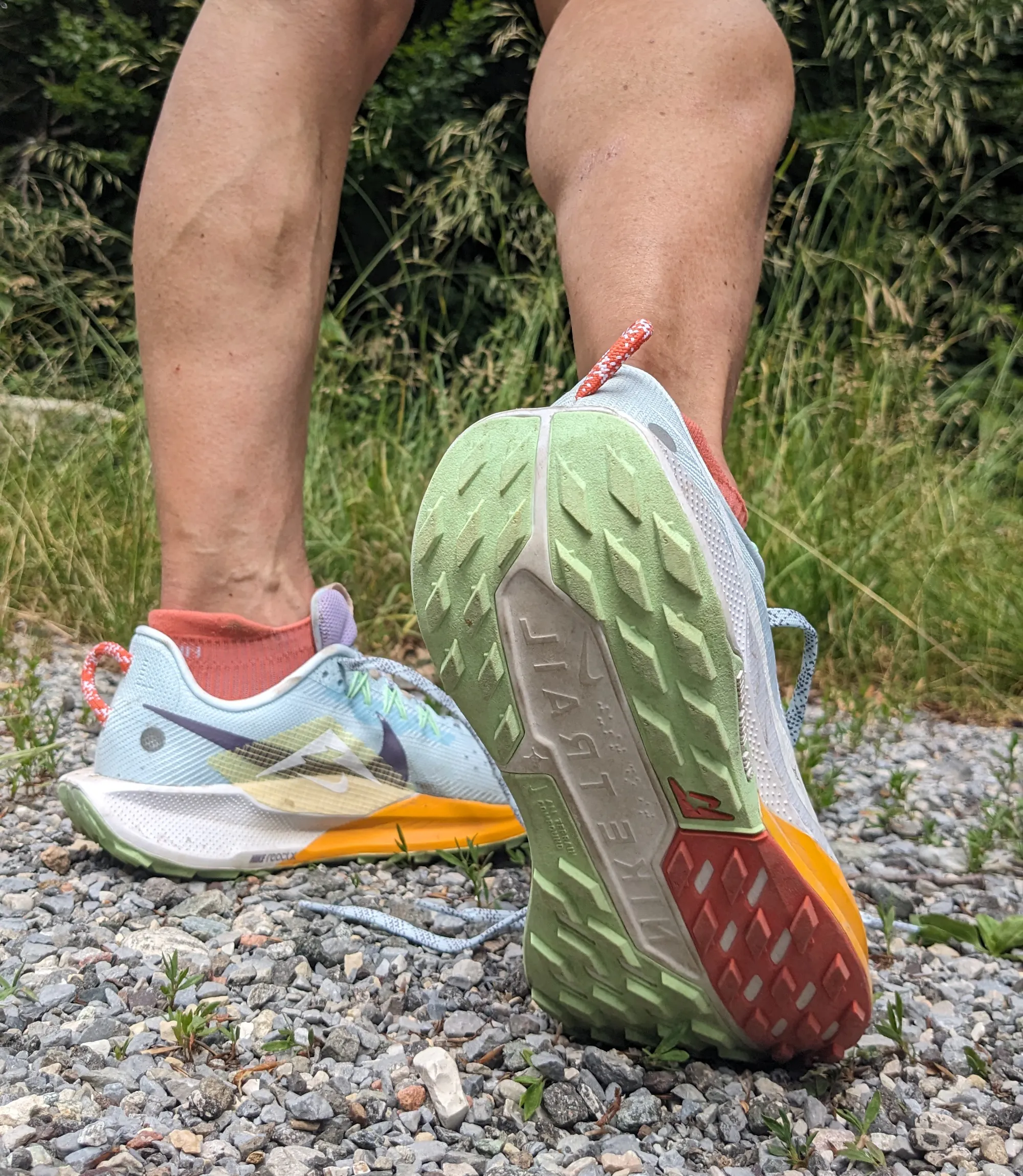 Premetto che sono molto affezionata alla versione 4 delle Nike Pegasus Trail: le ho trovate fin da subito molto avvolgenti, leggere ma in grado anche di essere protettive, con un grip non eccezionale ma resistente nel tempo e adattabile ai semplici terreni sterrati di campagna così come a percorsi di montagna, non tecnici, ma ripidi. Per le mie caratteristiche da scalatrice le ho scelte come scarpe da gara grazie alla loro leggerezza e adattabilità. Detto questo, ero proprio curiosa di provare la versione numero 5 e ho rilevato qualche differenza tra i due modelli, che mantengono, ad ogni modo, caratteristiche simili.