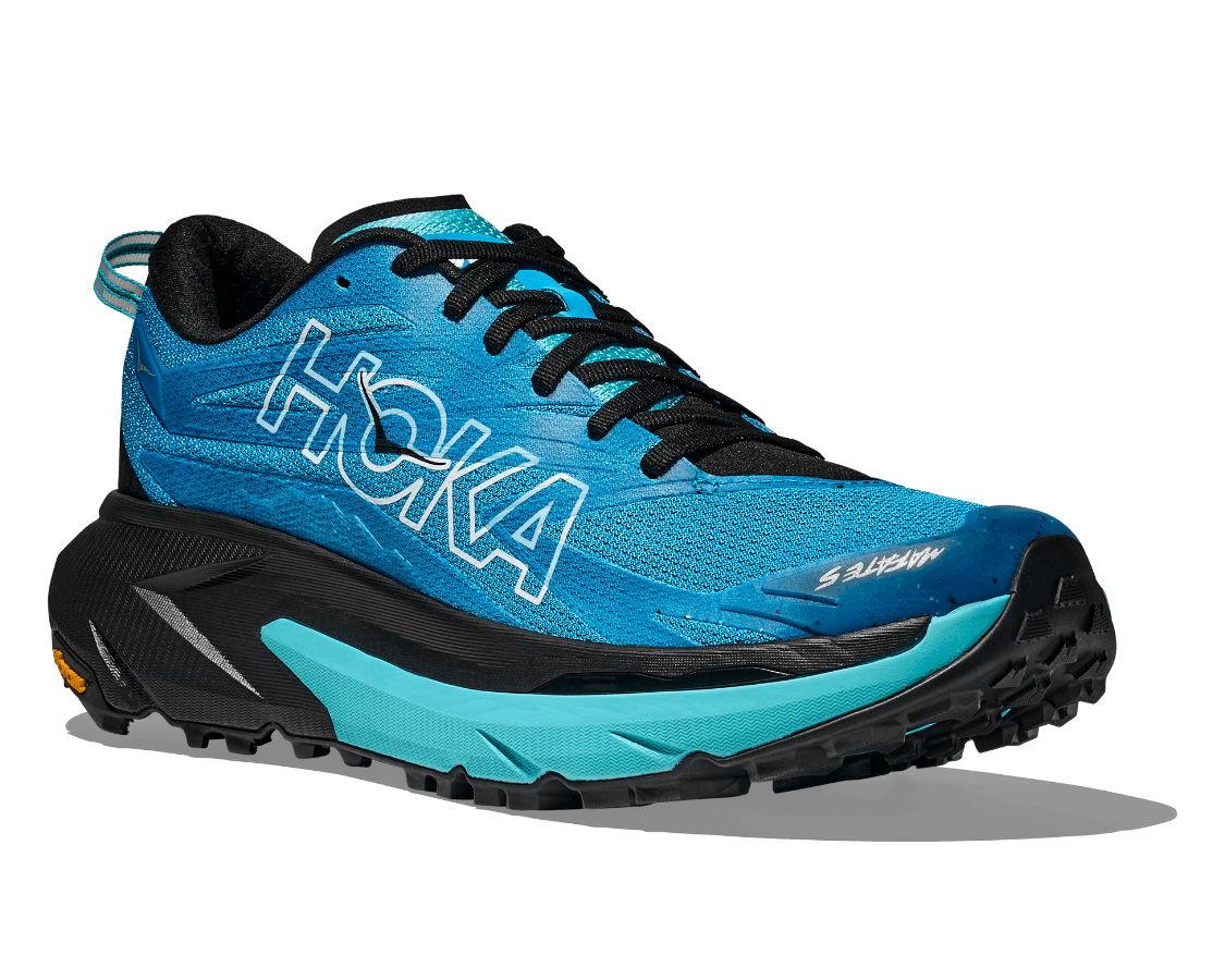 The Mafate 5 is built tough for those chasing mileage and helps maintain control during long haul efforts thanks to HOKA's Rocker Integrity Technology and a soft, springy foam just underfoot. Featuring protection tech in all forms, starting with an optional ankle gaiter to protect from trail debris, an impact-absorbing foam near the sole, and completed wih aggressive Vibram® Megagrip traction lugs.