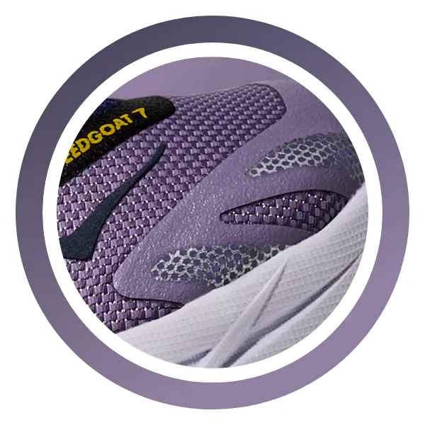 A grippy responsive ride for technical terrain. Amping up the energy return with a new SCF midsole, the GOAT is more responsive than ever. Now with an upgraded midsole with supercritical foam, a refined heel collar, and an added gaiter integration with remodeled lug orientation
